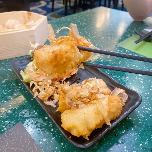 一般吃蘿蔔糕都是長方形狀煎或蒸,這裡卻改成長條狀炸過來吃,香口但不油膩,千島醬另外附上,可隨個人喜好添加,蘿蔔糕口感多汁,不會太粉粉的。