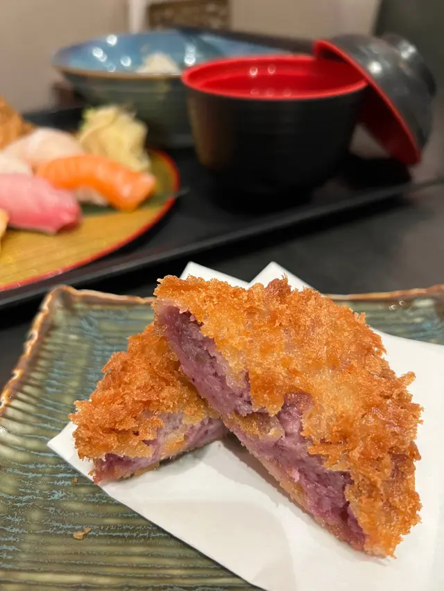 我地另外加配左2個小食,小食質素都好高,2樣都係新鮮炸起,紫芋甘栗餅的紫蓉香甜,加上粒粒栗子的口感,外脆內軟。