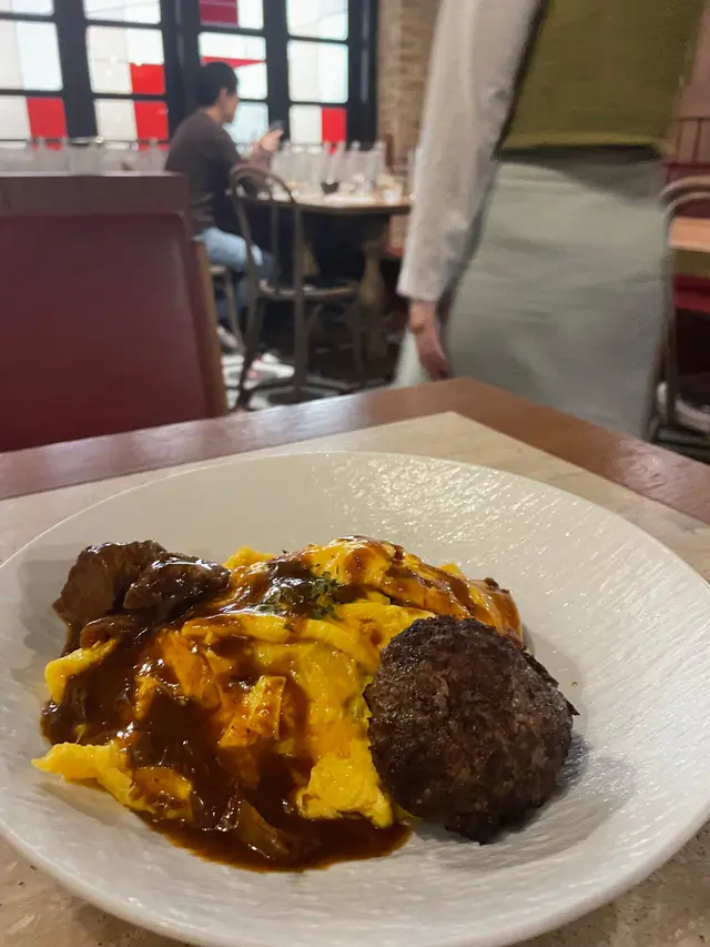 個蛋包飯係有一種好特別嘅牛肉燒汁鋪上面,啲飯亦都同其他普通蛋包飯唔同,係有特別烹調過,有啲香濃肉汁味。個漢堡扒煎得好香,但係比起我想像中冇咁juicy, 同埋個size真係有啲細🫣反而係個蛋包飯汁係比較驚喜,唔係普通一間店舖搵到嘅味,同埋裏面都有啲牛肉,嗰啲牛肉就有濃郁嘅肉香。不過整體嚟講呢一個飯我覺得係有少少overpriced