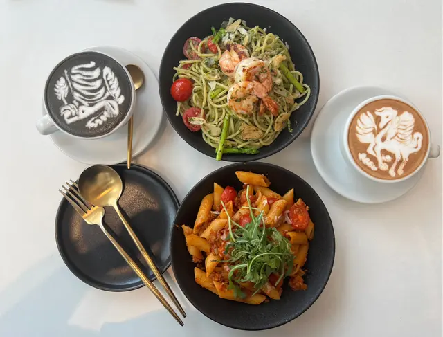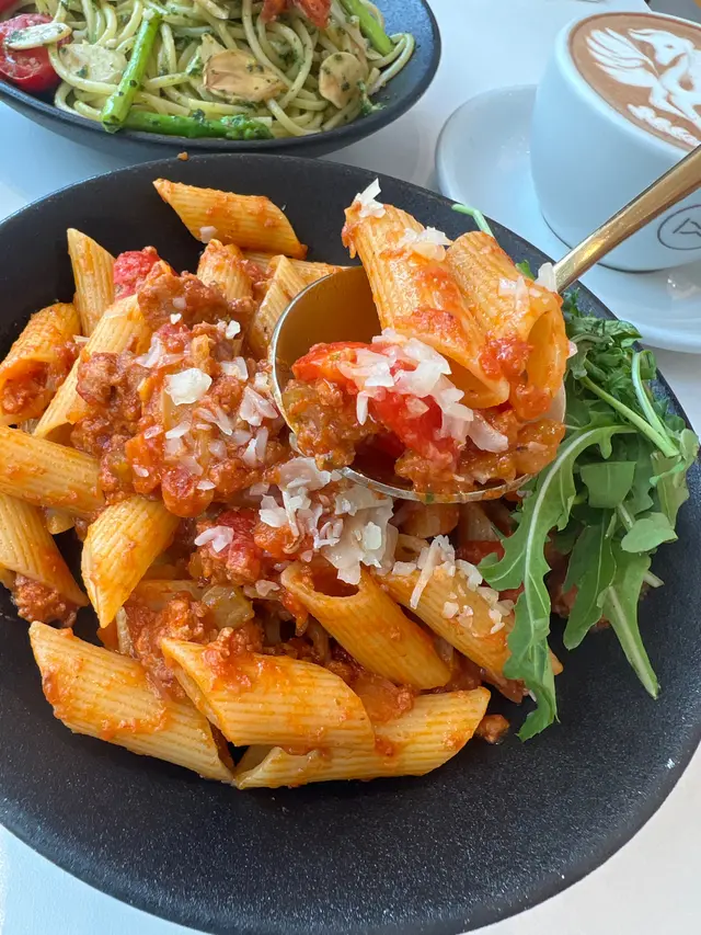 開揚的店子,落地玻璃的設計,讓店內分外明亮,給人精力充沛的感覺,跟朋友點了兩客意粉和咖啡,慢慢細心品嚐。
