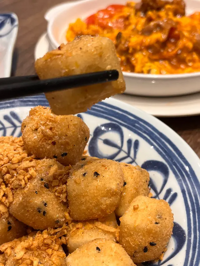 豆腐酥脆嘅外皮便隨之瓦解、内裏軟嫩香滑的口感在口腔停留幾秒亦轉眼消逝,