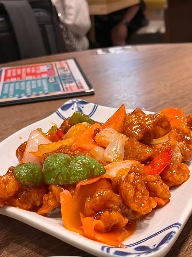 也令人誇目相看,現炸嘅咕嚕肉金黃油亮、咬落鬆脆得吱吱作響、與酸甜爽脆嘅酸薑蕎頭是最佳搭配。趁熱食才是最是美味。