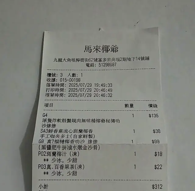 真椰香榴槤叻香摻摻 $99