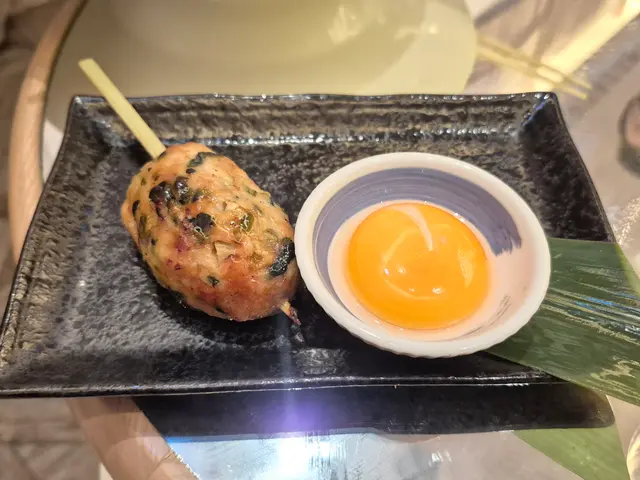 免治雞肉棒配日本蛋:雞肉棒香氣十足,蛋黃濃滑,混合後口感豐富。