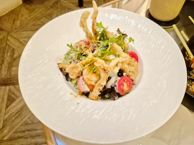 炸軟殼蟹野菜沙律:軟殼蟹炸得酥脆,野菜新鮮,醬汁微酸,開胃之選。