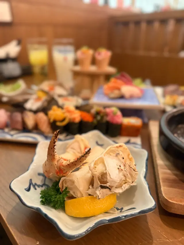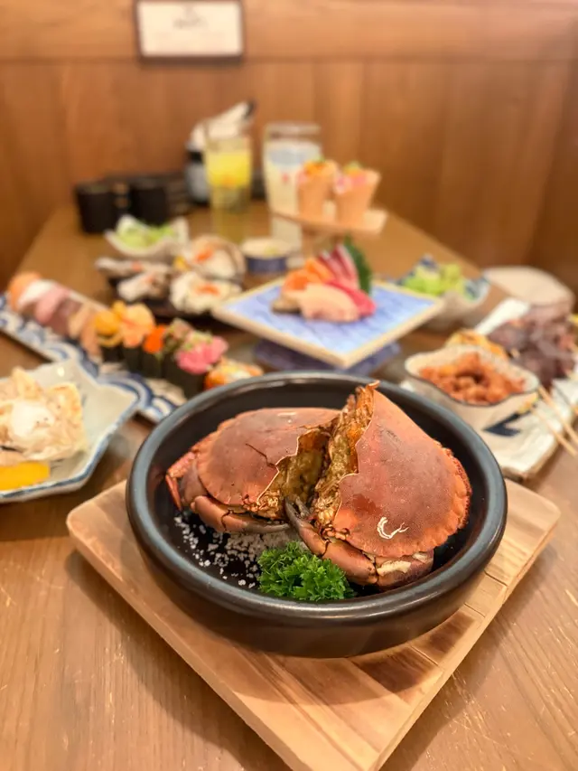 主菜**「浜燒北海道蟹腳」,蟹肉鮮甜,啖啖肉超過癮🦀🔥 配日式櫻花木煙燻麵包蟹**,煙燻味淡淡地,勁多蟹膏🤘🏻之後仲有宮崎A4和牛、北海道米豚、廣島牡蠣(每款兩碟),壽喜燒煱底,牛油香濃郁,牡蠣肥美滑溜,湯底熱辣辣暖胃!🥩🐷🦪❤️