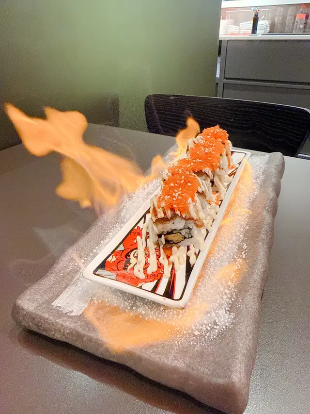 有驚喜招牌金龍卷,上枱時店員即場用火槍灸燒,真係好有創意,啱晒打卡,金龍卷用咗炸蕃薯同鰻魚配搭幾新鮮,鰻魚燒到好香脆又惹味,入口又幾好食🤤,推薦大家要試吓。