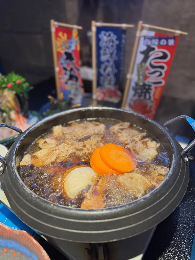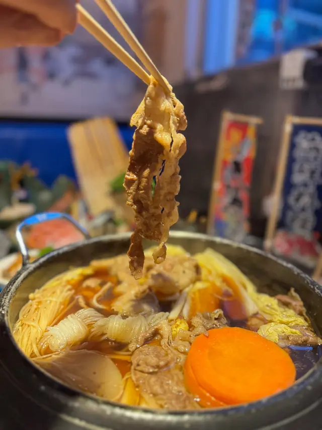 這裏有一道壽喜燒,很特別的! 要自己煮! 但不用擔心,餐廳會提供說明,裡面有牛肉豬肉蔬菜同壽喜燒湯底,有得玩有得食,帶埋小朋友 一齊親子活動。