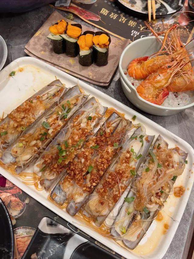 還有油鹽焗大頭蝦和金銀蒜蓉粉絲蒸蟶子皇🥰 大頭蝦很甘香 而且肉質肥大 整體口感鮮甜美味🦐 蟶子皇也是大大隻 爽口彈牙😛令人吃不停口✨
