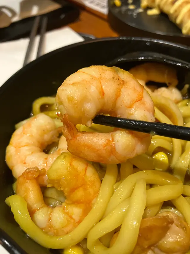 🦐香煎虎蝦咖哩湯烏龍麵 :本身好好奇咩係烏龍麵😮😮望落去好似烏冬咁 ,但口感比較Q彈。 虎蝦粒粒都好大隻,好有肉感。 不得不說既係個湯底係咖哩,食落好香濃咖哩味,味道好濃 !值得一試😉