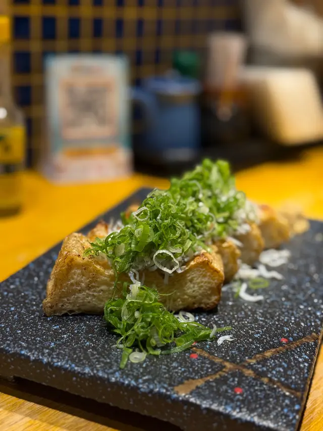 日式炸豆腐外脆內滑,上面舖滿魩魚仔😋佐酒一流👍