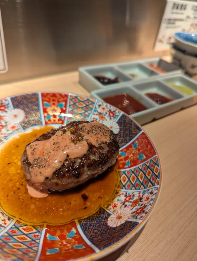 位於九龍灣德福廣場, 主打日式和牛漢堡排套餐, 漢堡排由師傅即場製作, 可透過玻璃睇到整個製程, 出餐時約medium rare, 放在鐵板上可按喜好自行調整熟度.