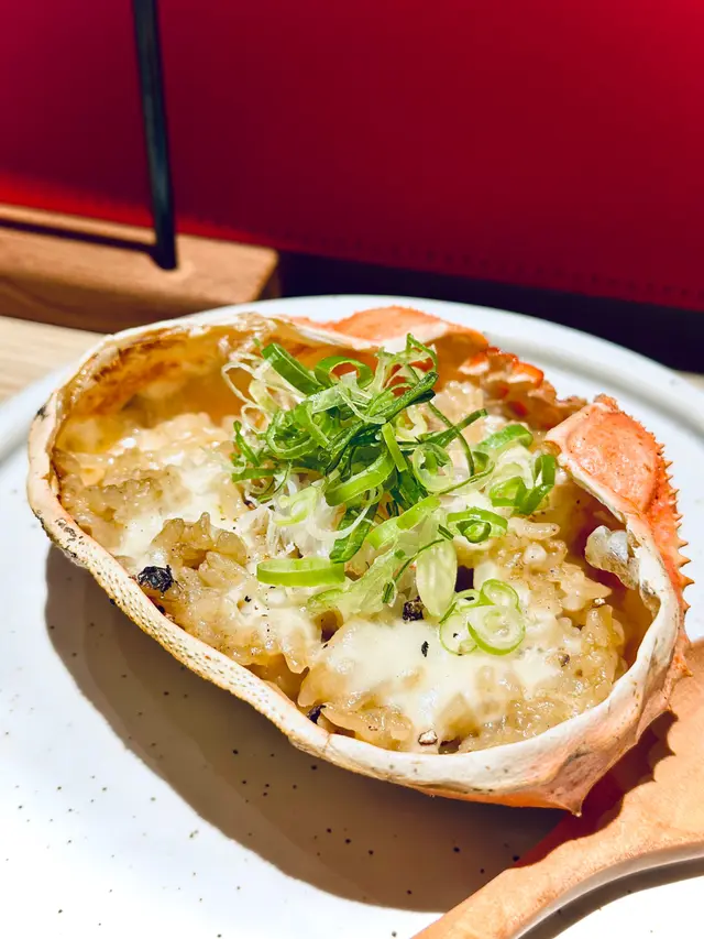 原個蟹殼上場,蟹殼尖端上放有有蟹肉,燴飯實在是非常美味。