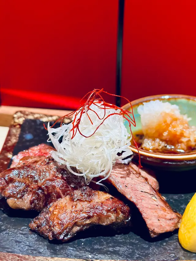 熟度剛好的鹽燒牛橫膈膜肉配蘿蔔茸柑橘酢,和燒鰻魚亦很不錯~