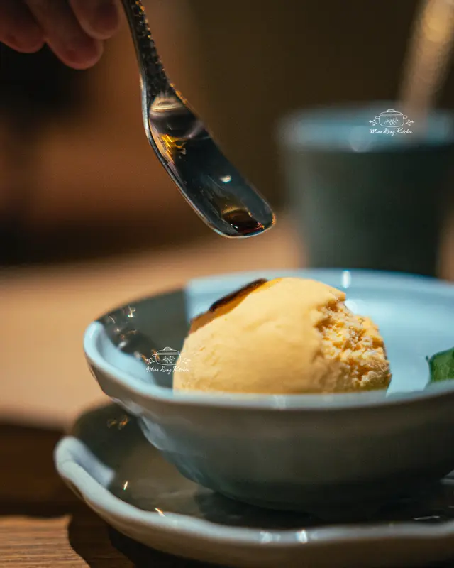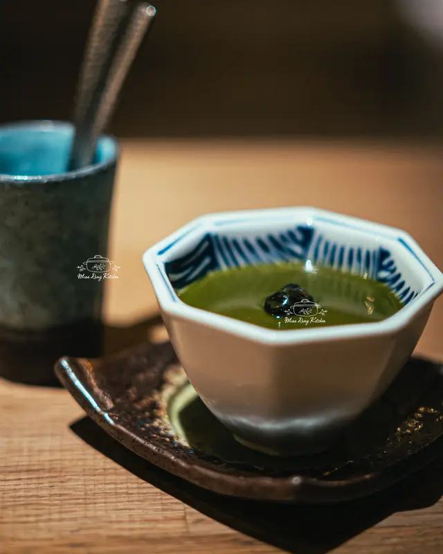 師傅自家製的甜品,幼滑的抹茶奶凍,微微回甘,以日本黑豆點綴,典雅且不膩。