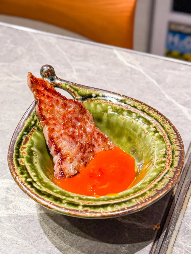 和牛里肌肉嘅油花好靚,入口鮮嫩多汁,同時富有壽喜燒嘅醬香醬甜,Dip埋濃厚嘅蛋黃食,真係滋味無窮!
