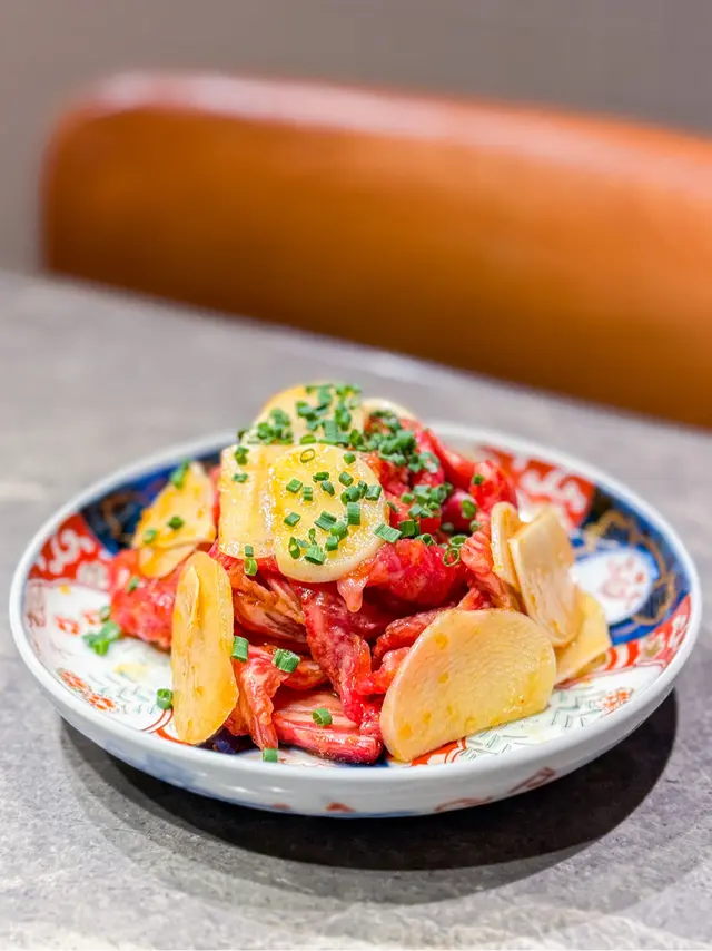 加入蔥花、獨子蒜片同醬汁嘅混合燒,包含日本和牛多個部位嘅邊角料,特別肥美!