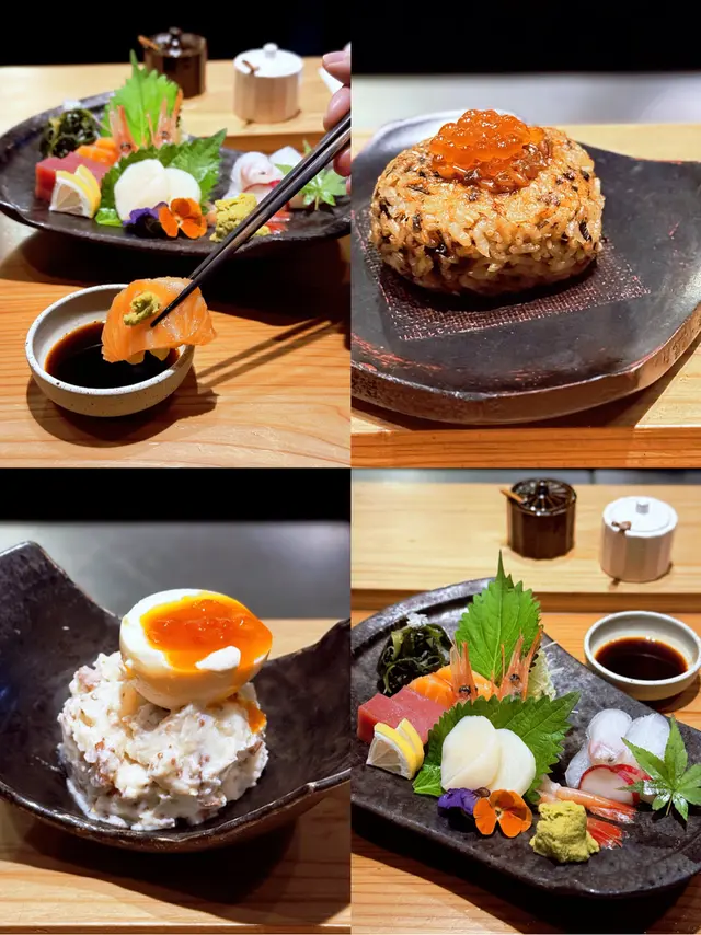 頂部晶瑩剔透的三文魚籽🧡輕輕咬開,釋放出濃郁的鹹香味,鮮甜多汁,飯團外層被燒得金黃微焦🍙散發出炭火的香氣,飯粒柔韌,掺雜著紫菜和其他調味,增添了豐富的風味