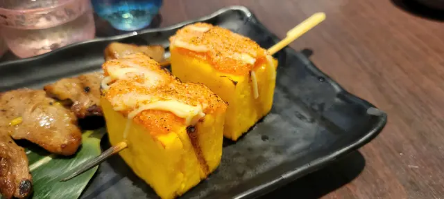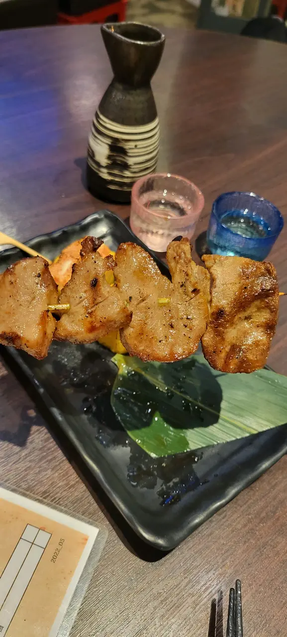 最有驚喜是雞翼,烤得脆皮,雞肉引嫩,配清酒一流!明太子雞肉串的明太子味濃郁,又不會過鹹,足夠令每一口雞肉都帶明太子味,個人很喜愛!胡椒柚子雞肉串的柚子同樣濃味,對比明太子會較鹹味,但配辛口的清酒就好像去日本一樣。