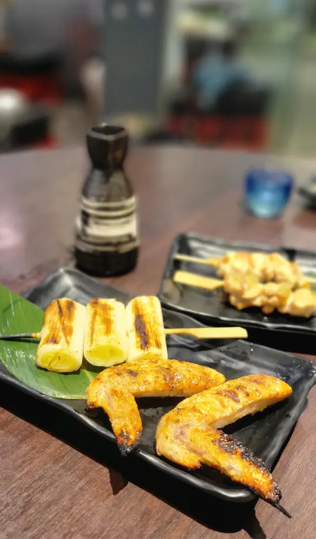 包括日本雞翼2隻,明太子雞肉串,胡椒柚子雞肉串,大蔥串