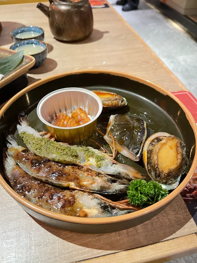 除了和牛,海鮮的表現同樣亮眼,炙烤霸王蝦、炙烤白鱔與屏東燒魚腹,白鱔皮脆肉爽,魚腹油脂豐腴,烤至金黃微焦,擠上幾滴檸檬汁,鮮美無比。