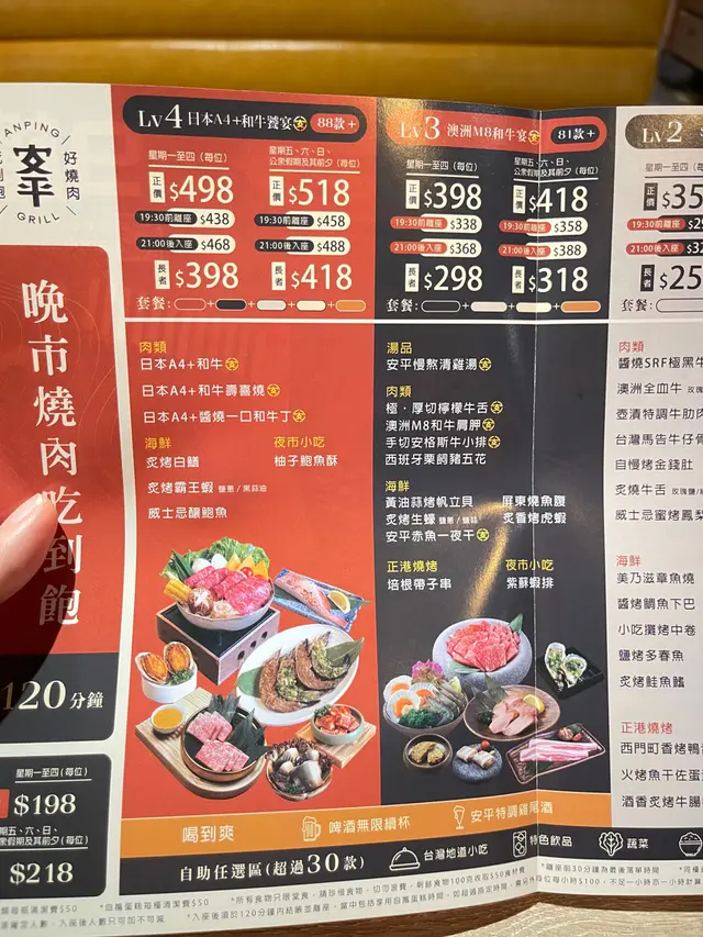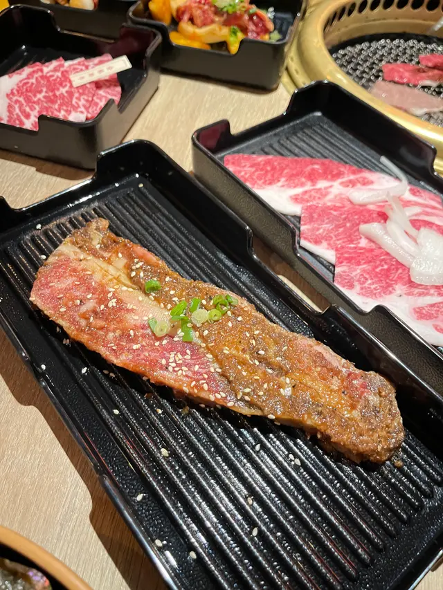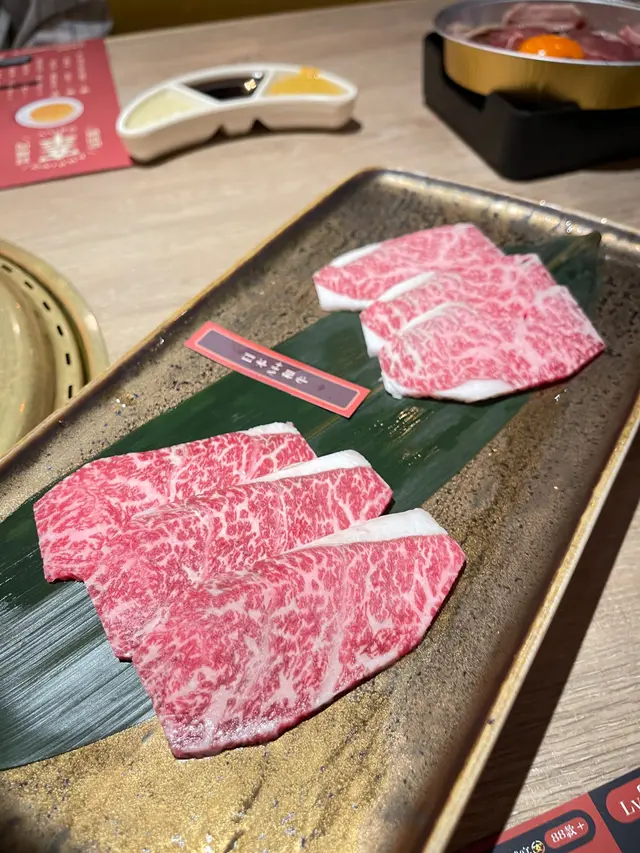 重頭戲當然是 日本A4+和牛。油脂分布均勻如大理石紋路,口感不俗。