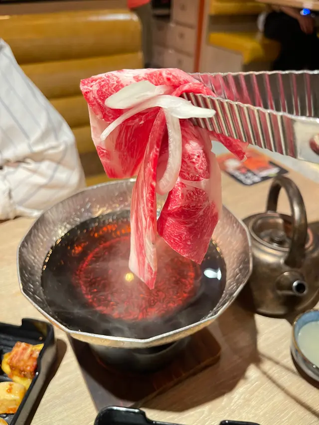 日本A4+和牛壽喜燒是另一種經典吃法。放入火鍋中煮,非常好。