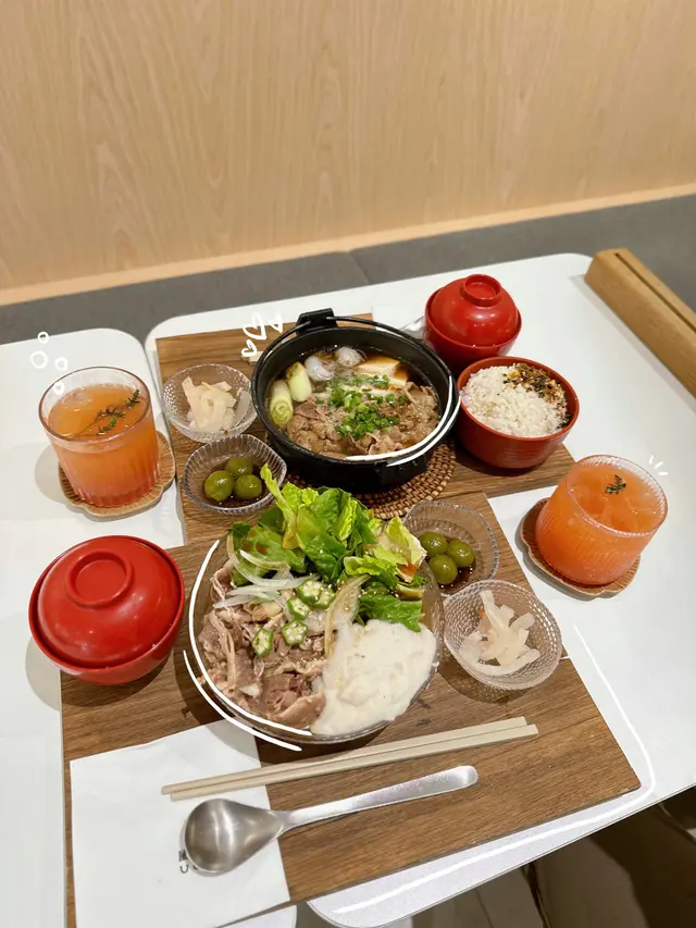 雖然定食唔係lunch set,但係加$30可享味噌湯 + 日替甜點 + 飲料一份😚壽喜燒湯甜甜地,仲有好多餸!除咗牛肉,仲有豆腐,芋絲,大蔥,豆腐等😆不過牛肉質素一般,有少少柴🥹可能唔食牛好啲~
