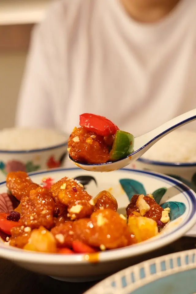 地道菜式尤其吸引,乾果咕嚕肉,色彩鮮艷,除了三色椒🫑,還有乾果,令外觀及口感都得以提升! 味道酸酸甜甜妹開胃!