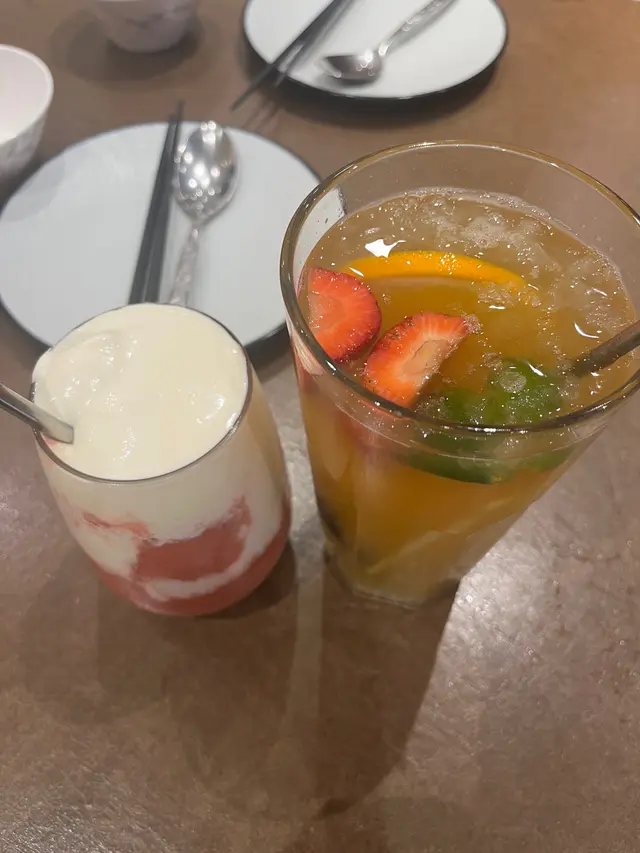 奶蓋雪山草莓冰🗻🍓、青桔黃皮水果凍綠茶: