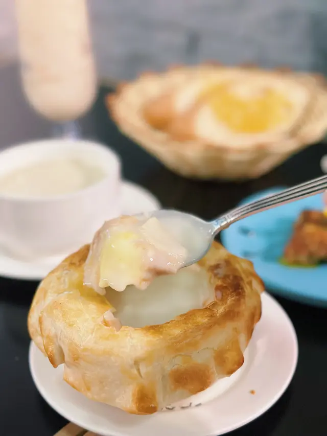 酥皮配忌廉湯真係絕配 仲食到有海鮮粒
