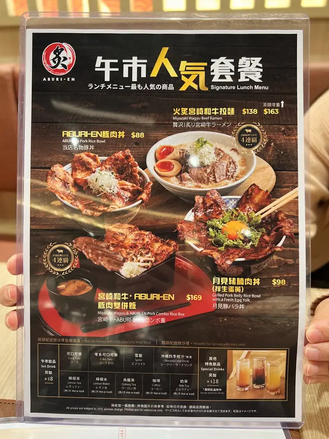 午市時段設有多款人氣套餐,跟配沙律及味噌湯,更可以優惠價加配飲品。