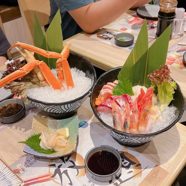 最鍾意大大隻嘅松葉蟹腳同赤蝦 三文魚 油甘魚 帶子等刺身都係厚切 口感軟糯又新鮮