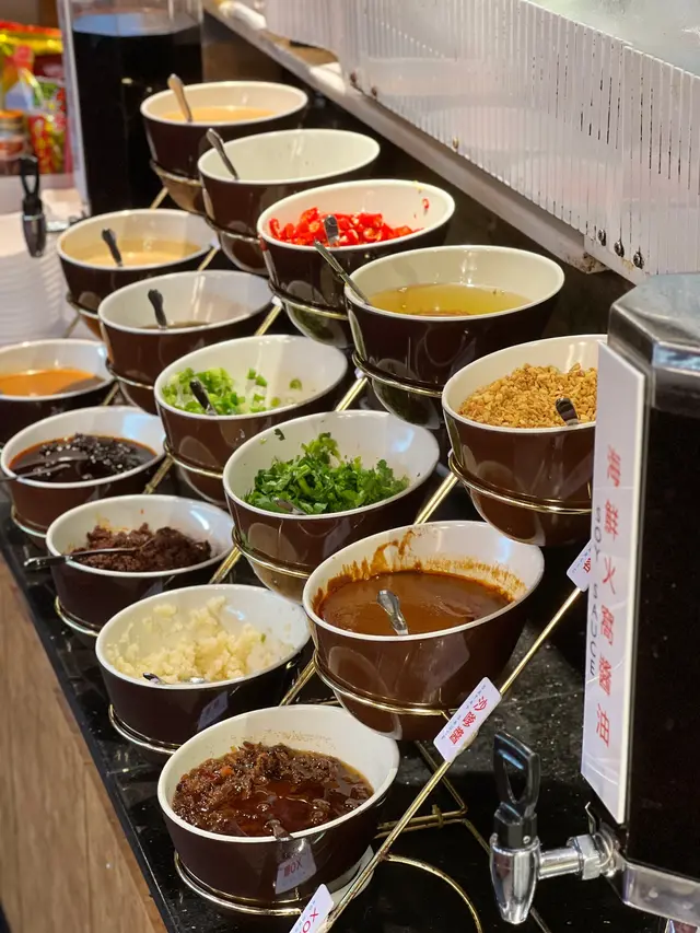 有專人打理及補充食物,環境保持得乾淨衛生。火鍋醬料有幾十款調味料自行調配;多款新鮮翠綠的蔬菜,亦有林林總總的火鍋配料。