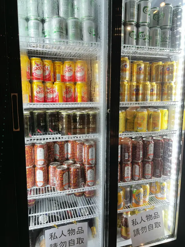 有多款罐裝及樽裝飲品,亦有啤酒供應。