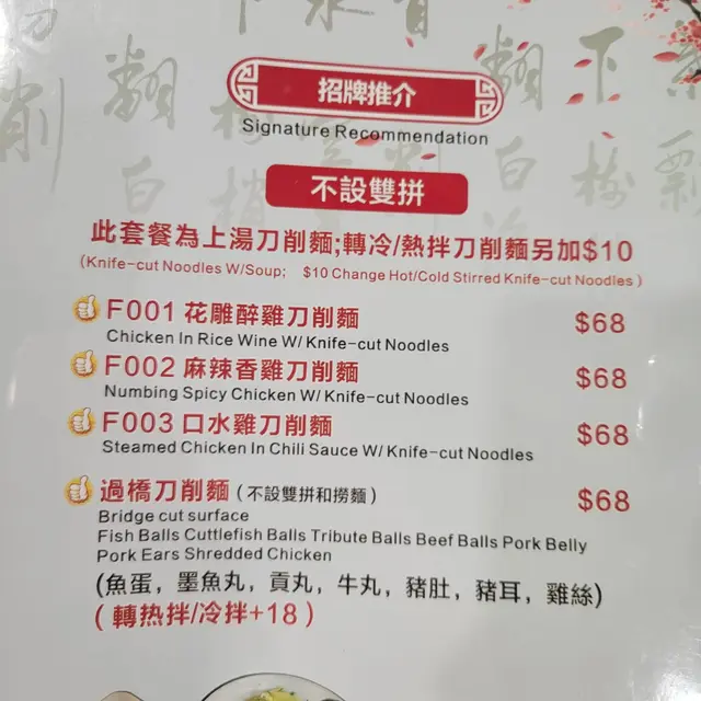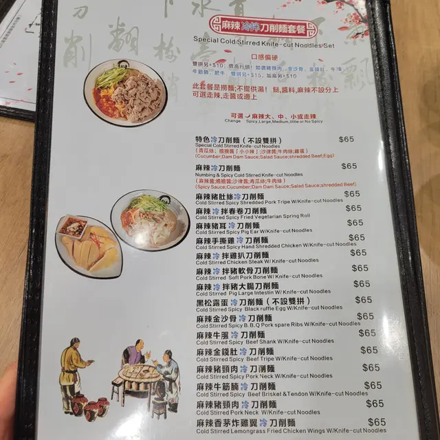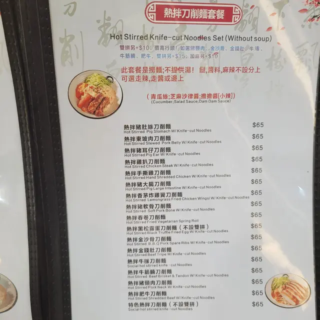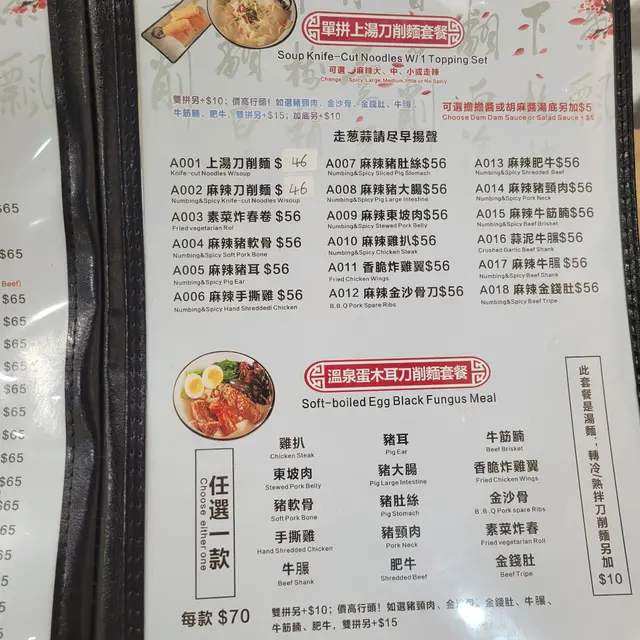 🌶️麻辣牛筋腩豬大腸刀削麵 $56+$15