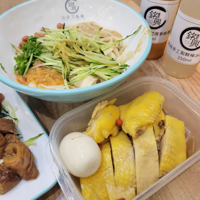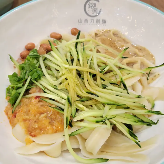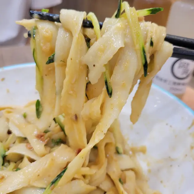 +$10轉左熱拌,熱拌有辣醬、蒜蔥🧄、胡麻醬、青瓜絲🥒、蔥花、花生等,花雕醉雞份量好多啖啖肉,酒味足🍶仲有隻花雕溏心蛋,見當日好多人都係叫花雕雞😂熱拌刀削麵夠味,食辣既朋友可以自己再加辣油🌶️