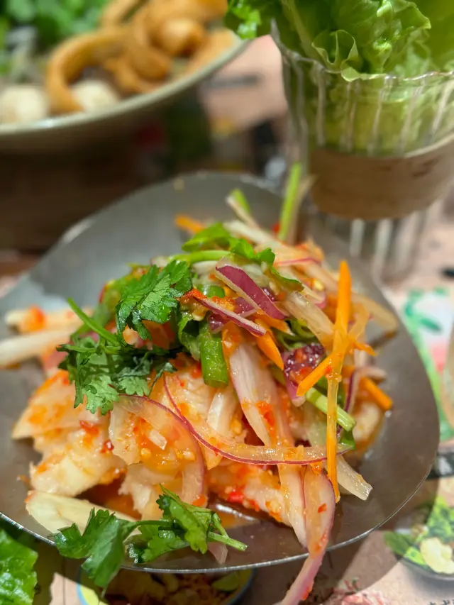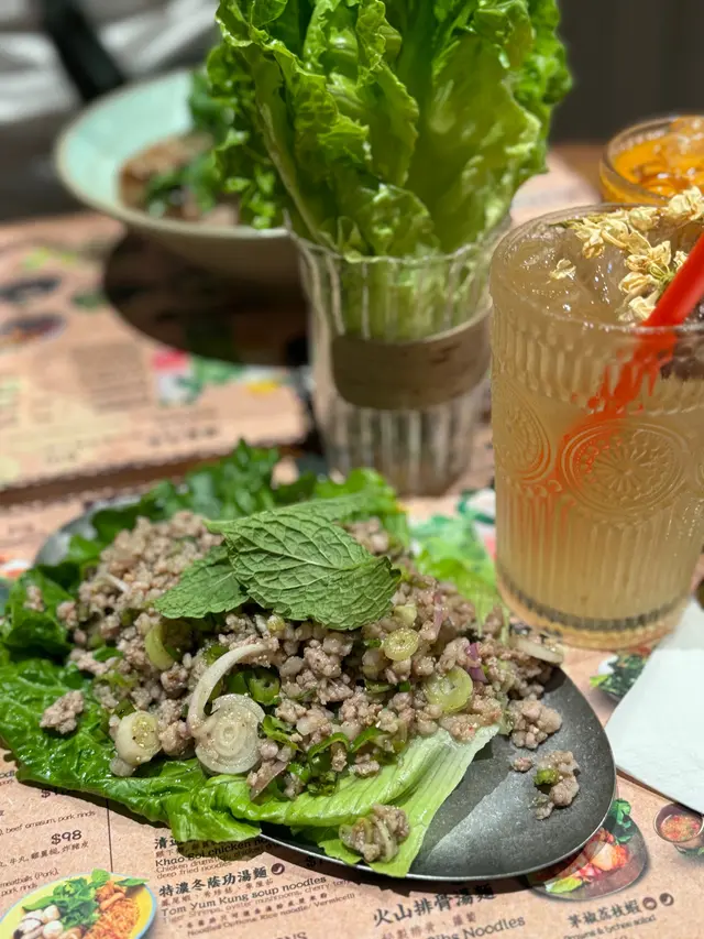這道生菜包新鮮爽口,豬肉肥瘦均勻,配料豐富,搭配特製醬汁,讓人感受到清新的泰式風味。