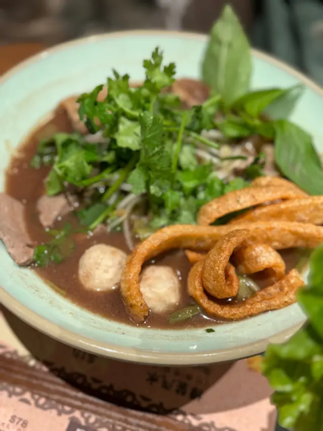 這款船麵的湯底鮮美,帶有濃郁的香料風味,搭配彈牙的金邊粉,口感十足。豬肉、肉丸及內臟可口嫩滑,吸收了湯汁的精華,讓人一試成主顧。