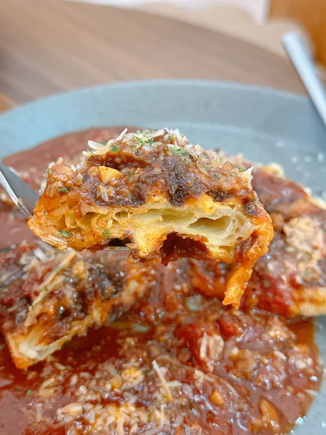 鹹味的窩夫好有驚喜值得推介💯外脆內軟的窩夫搭配上濃郁的芝士蕃茄肉醬🍅甜味和酸味平衡得恰到好處口感豐富🧇牛角包窩夫的牛油味濃郁口感煙韌鬆軟😍鹹甜口味好特別