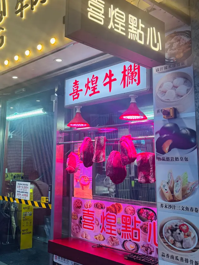 同老豆突擊旺角搵食,撞正「喜惶」懷舊風點心店!門口牛肉檔裝修超有gimmick📸 兩個人胃細試唔晒招牌牛點心🥲 但平靚正套餐夠抵玩👇