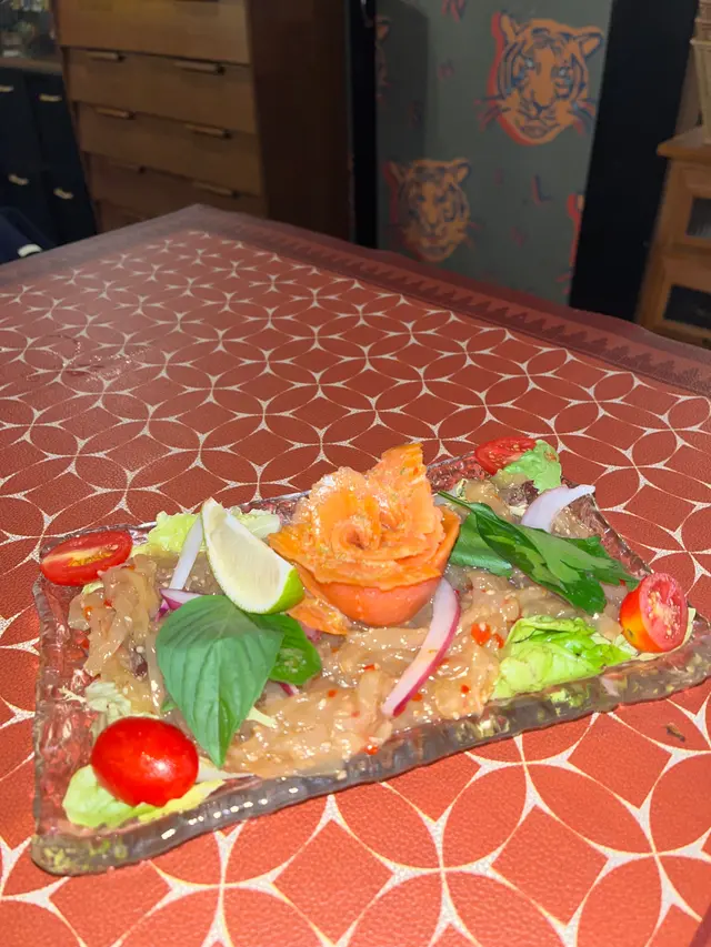 海蜇脆嫩 煙三文魚擺盤有心機 整咗朵花出嚟 味道正常 兼具酸辣鹹 整體都幾重口味 有一種去咗轉泰國夜市嘅感覺(〃 ᷇ᵕ ᷆〃)