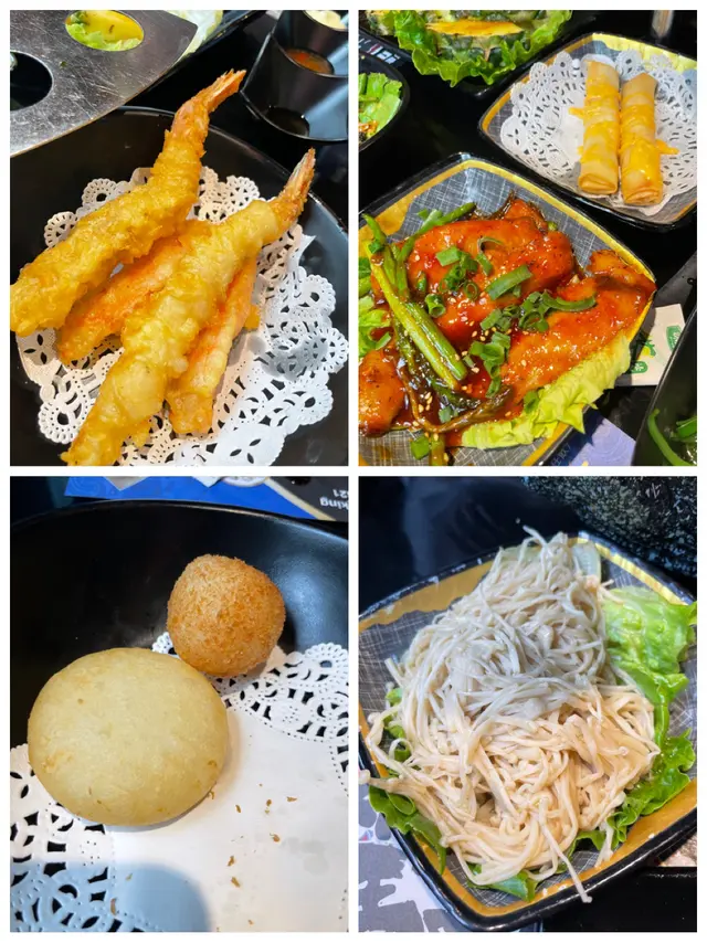 放題有刺身、壽司、手卷、沙律、冷盆、炸物、天婦羅、燒物、串燒、泰國美食、雪糕等,基本放題嘅嘢食餐廳都有得食,餐廳仲可以打邊爐,有唔同火鍋湯底及配料等,非常豐富。