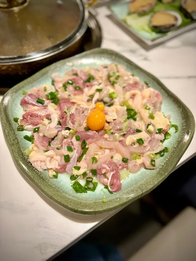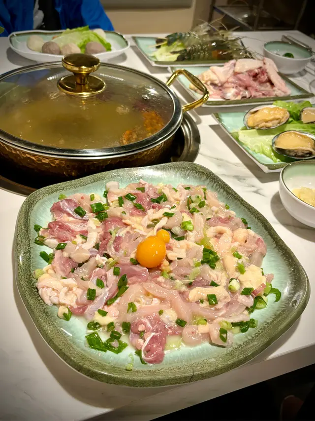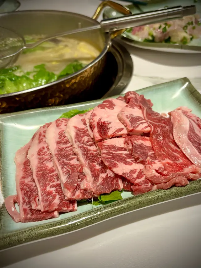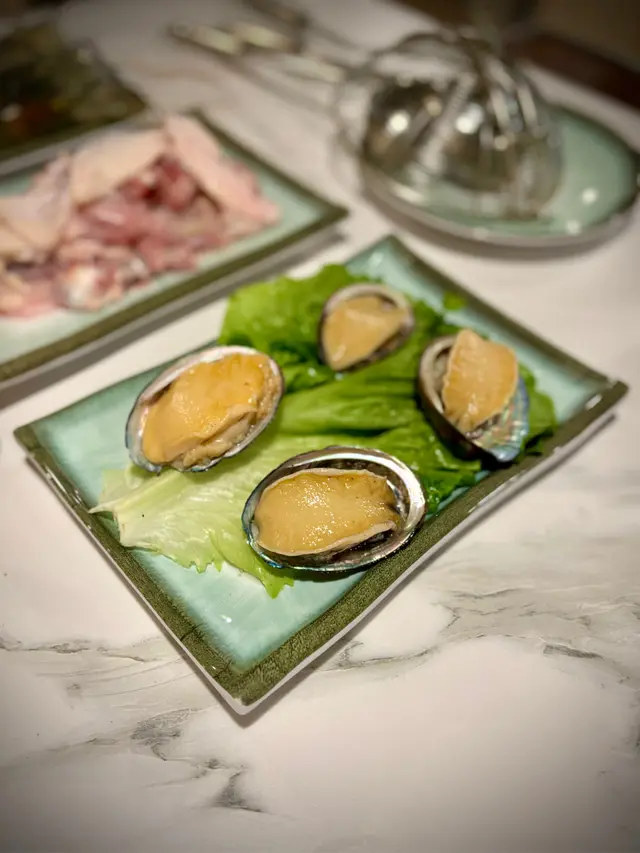 套餐除此之外,仲有好新鮮嘅鮑魚,靚靚蔬菜拼盤同手打雜丸拼盤!另外加配嘅手切牛肩頸同牛小排。牛肩頸肉味濃郁,牛小排則油脂分布均勻柔軟甘甜。