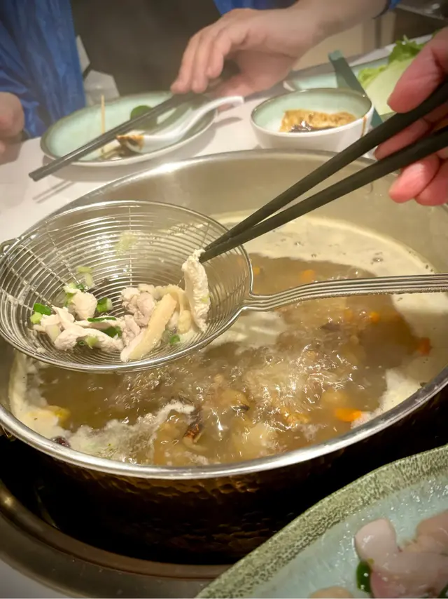 我哋嘅椰子滋補藥膳雞湯底,有紅棗黨參、杞子圓肉,香甜且補益不燥。$388 套餐包含半隻雞已經起骨,雞骨部份用來墊湯,增添湯底風味。主角雞肉切絲,只需淥煮15 至20秒就食得。雞皮爽脆彈牙,雞肉充滿濃郁的雞味,吸收了椰汁的甜美,令人一試難忘 … 喺呢度嘅特色亦都十分之出色!