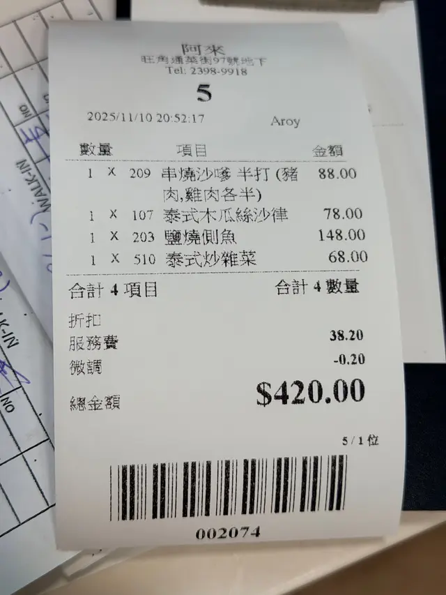 旺角抵食泰國菜|鹽燒鯽魚嫩滑到驚艷!🐟 mmfoodntravel等级42025-11-11 關注 今晚同朋友嚟到旺角呢間泰國菜小店,$420食到四款菜式,人均二百幾真心合理!#香港美食 🐟鹽燒鯽魚絕對係全場MVP!魚皮燒到香脆帶鹹香,用筷子輕輕一撥就開,魚肉嫩滑到好似豆腐咁~滴少少靈魂醬汁更加提鮮,完全無泥味,水準超乎預期✨🍢串燒沙嗲半打豬雞都有,炭火香十足,沙嗲醬濃稠惹味~🥗泰式木瓜絲沙律酸甜爽脆,辣度溫和,好開胃!🥬泰式炒雜菜鑊氣夠,蔬菜保持爽脆~店員態度友善,上菜速度夠快~以呢個親民價錢嚟講質素絕對收貨,已經bookmark下次再encore條鹽燒魚!以上食評乃用戶個人意見 , 並不代表OpenRice之觀點。讚好分享旺角抵食泰國菜|鹽燒鯽魚嫩滑到驚艷!🐟 阿來泰式地道風味 https://s.openrice.com/QrLT0k2PV00檢舉 張貼 評分5味道5環境5服務5衛生5抵食用餐日期2025-11-10用餐途徑堂食人均消費$210 (晚餐)