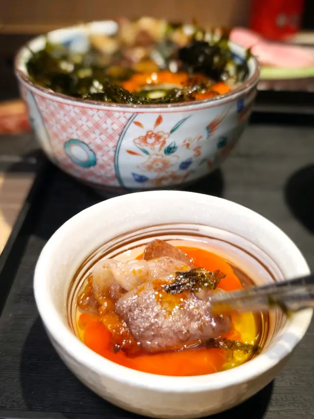 旺角抵食燒肉,有單人燒爐唔怕尷尬 麻甩大叔周遊遊等级42025-02-271K 浏览 关注 就腳貪方便係旺角見到呢間CP值高嘅燒肉,餐廳多爐頭,抽油煙抽得幾好唔會焗住,食完無成身味。A4和牛赤身配紫菜飯 $118套餐已經有湯同前菜。湯有粟米濃湯或者麵豉湯揀。赤身唔多油脂,不過都有雪花。燒香左浸埋落雞蛋到食,香滑好多。連埋紫菜飯一齊食都唔差,油膩感仲要無咁重壺漬蒜香豬腩條 $158豬腩條夠味,燒之前浸多次落個汁到。唔特別肥,肉質咬落幾爽,油感唔特別重所以唔會太膩加錢轉左明太子日本蛋烏冬明太子有D辣,蛋黃夠香,同埋有D蔥同木魚成個味道其實幾好,唔錯的以上食记乃用户个人意见 , 并不代表OpenRice之观点。赞好分享旺角抵食燒肉,有單人燒爐唔怕尷尬 燒肉 JuJu https://s.openrice.com/QrLT0LeLQ00检举 张贴 评分5味道5环境4服务5卫生5抵食用餐日期2025-02-15用餐途径堂食人均消费$130 (午餐)