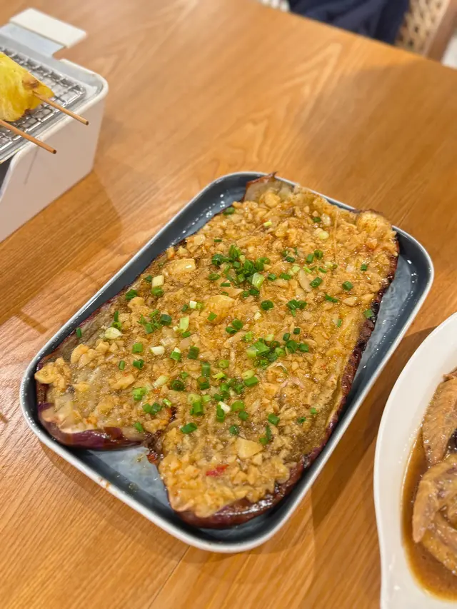 烤茄子🍆:食燒烤點吾食茄子,軟焾茄子加上大量蒜蓉小米椒,微辣惹味,茄子一絲絲夾起,連同多蒜蓉,仲有醬油配合,好味。