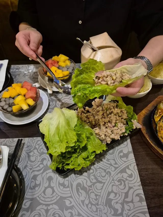 旺角正宗泰國菜 realmeal等级42025-10-101K 浏览 关注 ⭐《泰屋》一年冇嚟 今次覺得啲嘢好食咗 座位闊落咗 味道正宗泰菜 我哋張枱都幾闊落 坐得舒服 ⭐醃肉碎生菜包 係我至愛 一定要點 鹹鹹香香嘅豬肉 包上新鮮嘅生菜 感覺清新 ⭐辣椒膏炒青口 熱辣辣嘅鐵碟上菜 好多配料 金不換 洋蔥 秀珍菇等等 青口好大粒🦪 煮得好入味 ⭐鮮雜果黑珍珠涼粉 高質素嘅甜品 水果好甜 西瓜 菠蘿 芒果 好新鮮 夏天食好涼快⭐泰國椰青 大大個 好清甜 好降火⭐椰汁西米糕 椰汁好香 甜甜地 唔會覺得油膩覺得呢度啲嘢食水準高 下次會再約朋友嚟 ⭐112以上食记乃用户个人意见 , 并不代表OpenRice之观点。赞好分享旺角正宗泰國菜 泰屋 https://s.openrice.com/QrLT0by2l00检举 张贴 评分5味道5环境5服务5卫生4抵食用餐途径堂食
