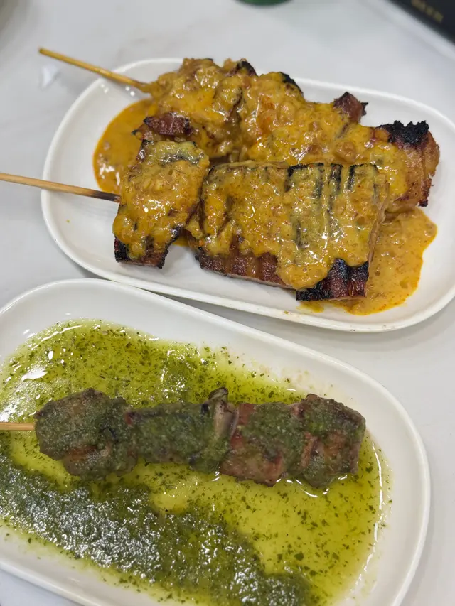 啖啖肉,有焦香脆邊,加上秘製花生沙嗲醬。
